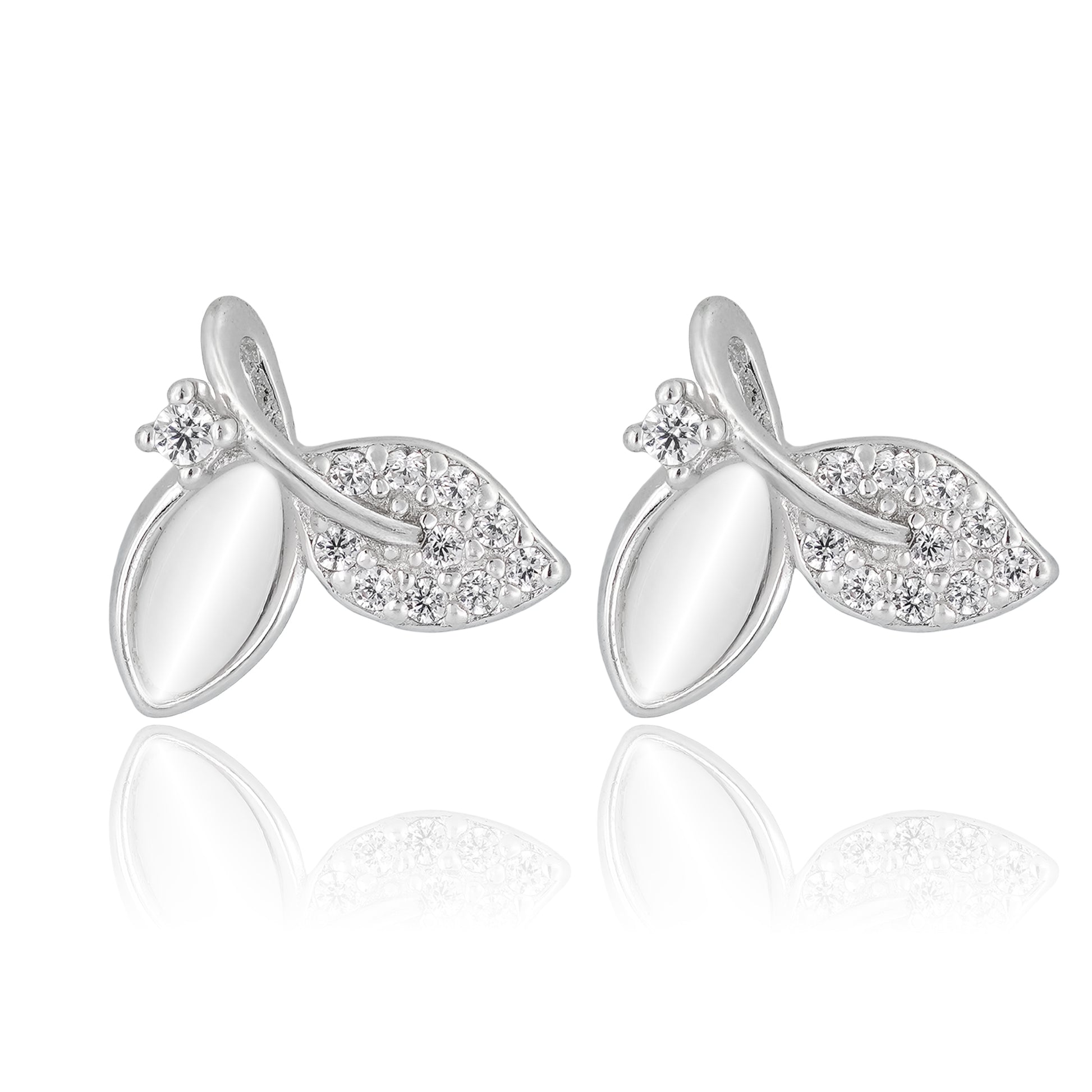 • Earrings Set 1 (Leaf Studs): Designed like a pair of dewdrop-kissed leaves, these stud earrings feature a blend of polished silver-tone surfaces and pave-set crystals that add a twinkle with every turn.