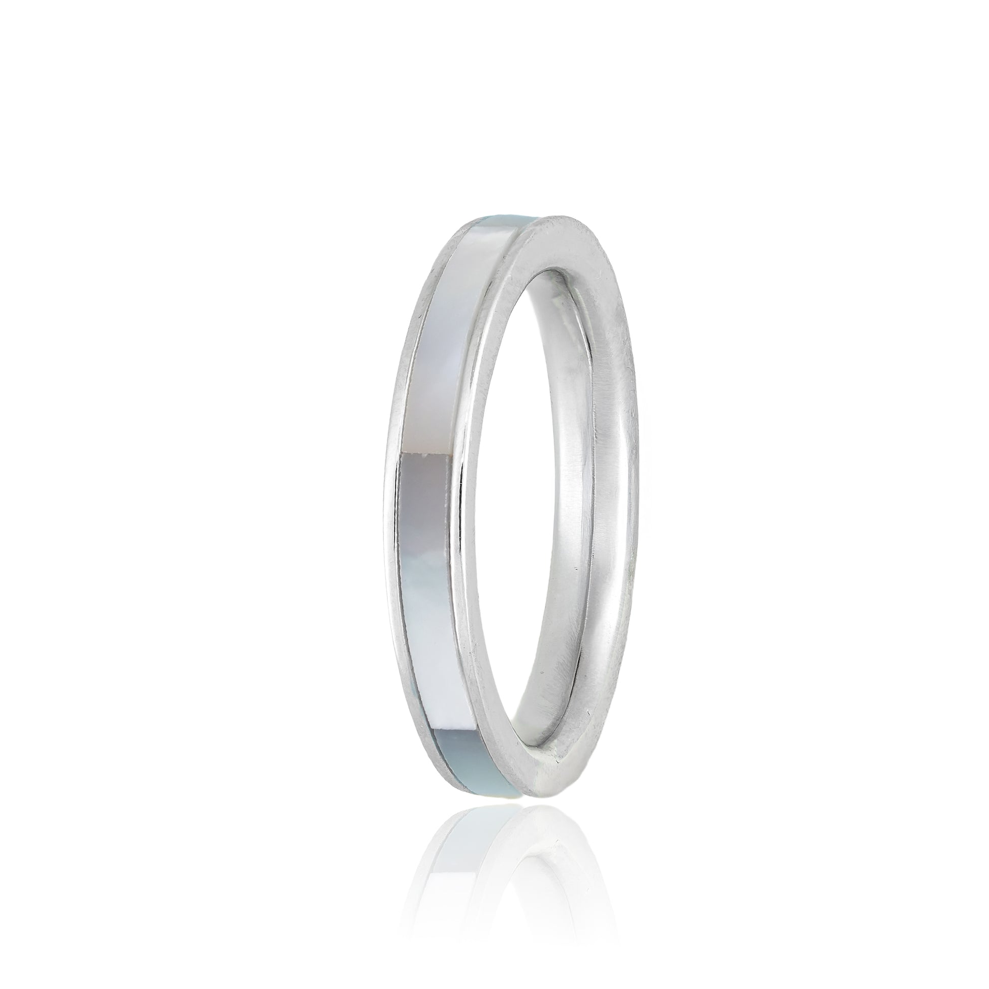 This classic band features a smooth, mirror-like surface with a subtle beveled edge that catches the light just enough. Its minimalist profile makes it versatile perfect as a standalone piece or for stacking.