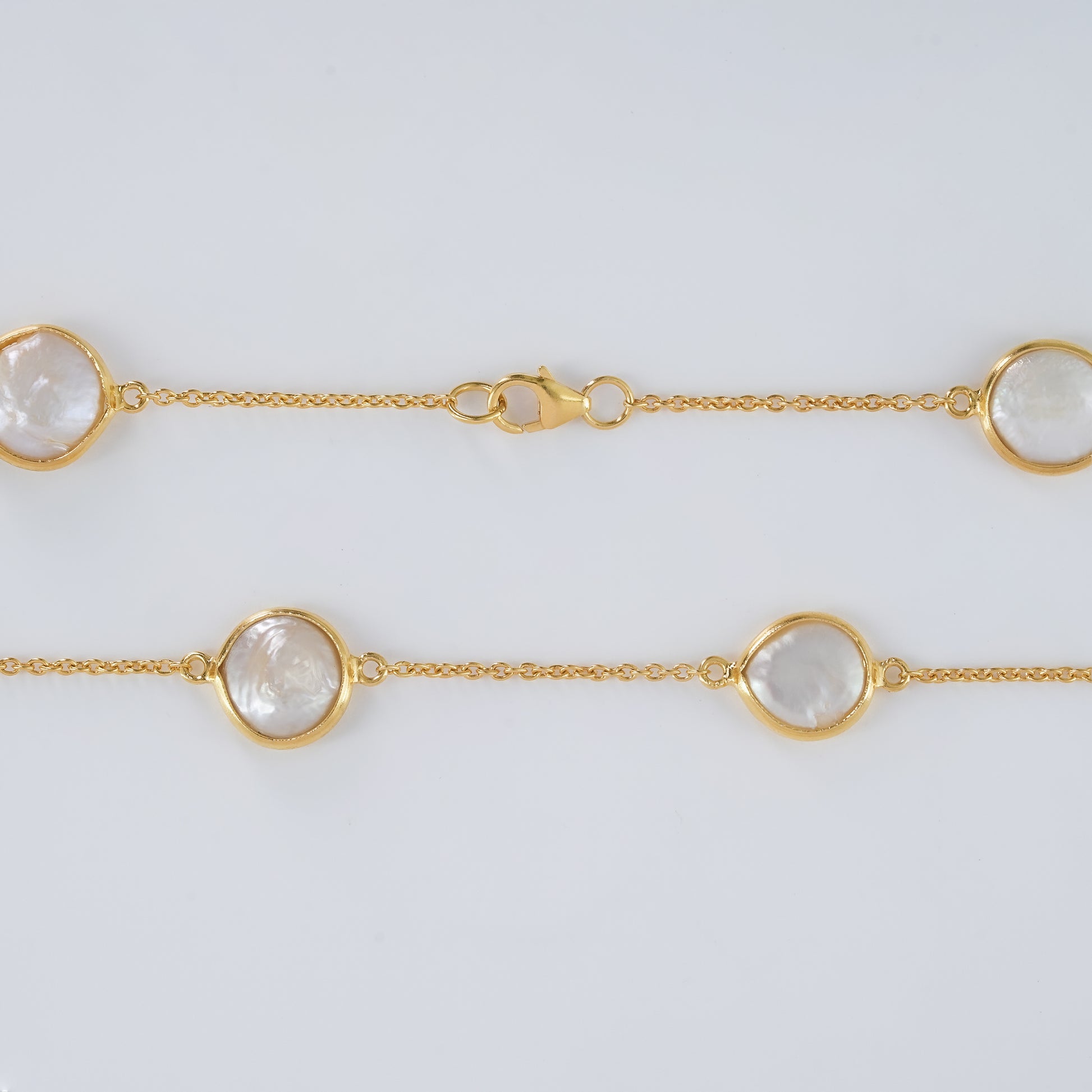 The Lumière Pearl Cascade Chain - Natural Freshwater Button Pearls 18kt Gold Plated Sterling Silver